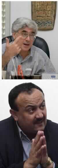 (Top)Palestinian philosophy professor Sari Nusseibeh, the Palestinian Al-Quds University president and the PLO's commissioner for Jerusalem affairs, is shown at his office in Jerusalem in this Oct. 22, 2001 file photo. Israeli police closed Nusseibeh's office Tuesday, by order of Public Security Minister Uzi Landau. (AP Photo/Rikard Larma)