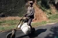 A Rwandan boy carries his shopping home on a bicycle made from wood, Monday, Oct. 1, 2001, near Butare some 200 kilometers (124 miles) south of Kigali, Rwanda. At least half a million Tutsis and politically moderate Hutus were killed during a 100-day killing spree organized by the extremist Hutu government in the small central African nation. Rwandans began to elect judges for the traditional courts of justice expected to speed up trial of more than 110,000 people in jail. Only some 6,000 people have been tried since 1994, - Oct 04 7:51 AM ET(AP Photo/Karel Prinsloo)